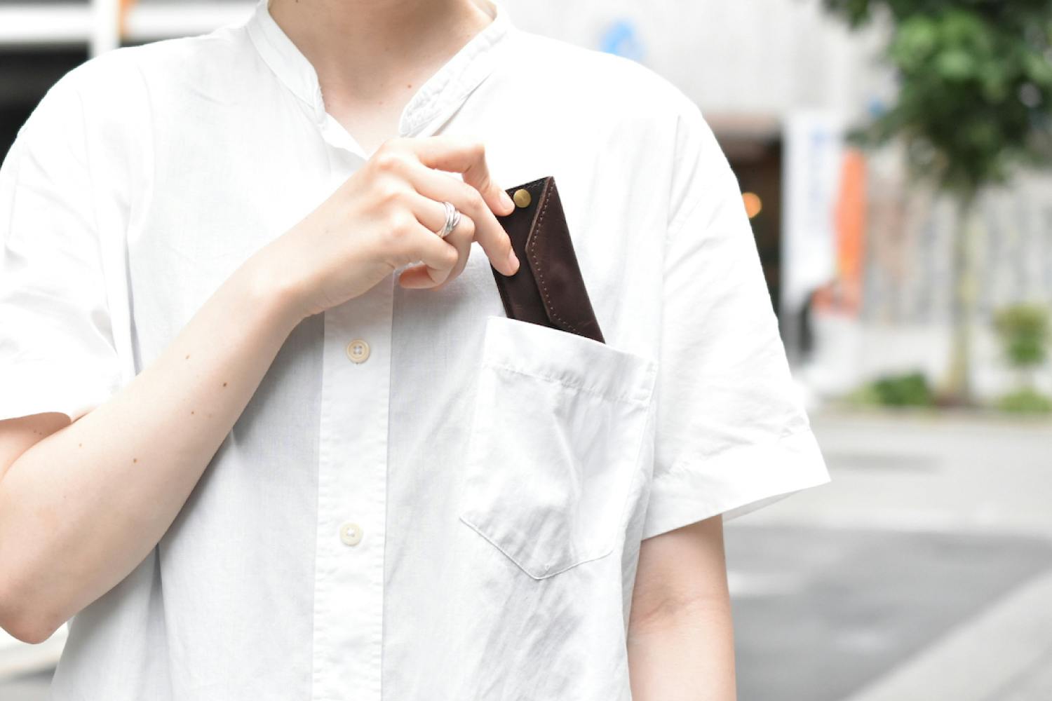 ちょっとした外出で「財布」+「キーケース」+「スマホ」を持つ場合、ポケットに入るけれど嵩張って動きにくい・わざわざカバンを持たなければいけない・手に持っていると他の動作の邪魔になるなどの悩みが出てきてしまいます。