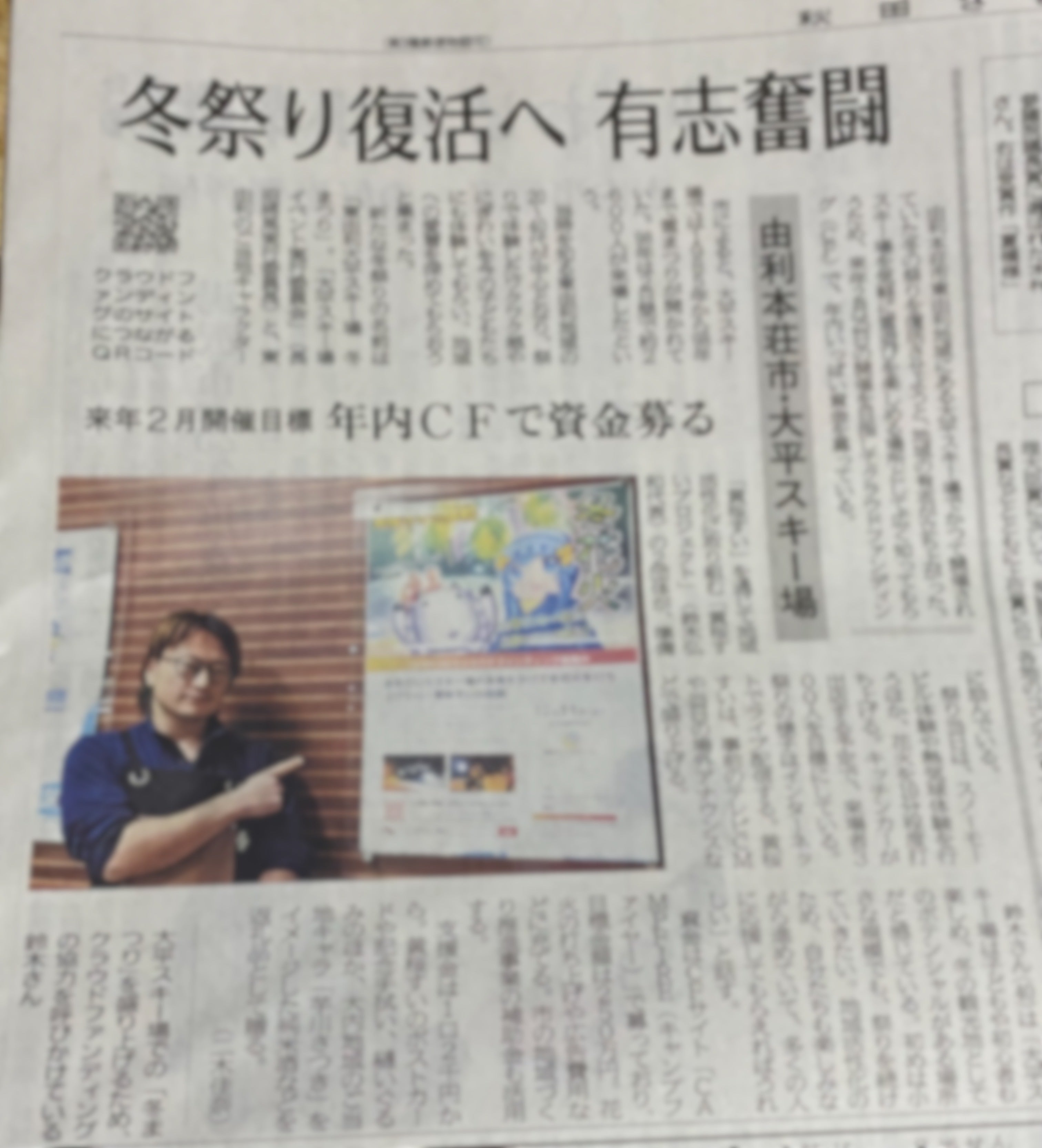 12/14(水)付けの秋田さきがけ新聞に大平スキー場冬花火企画の記事を掲載して頂きました。ありがとうございます!