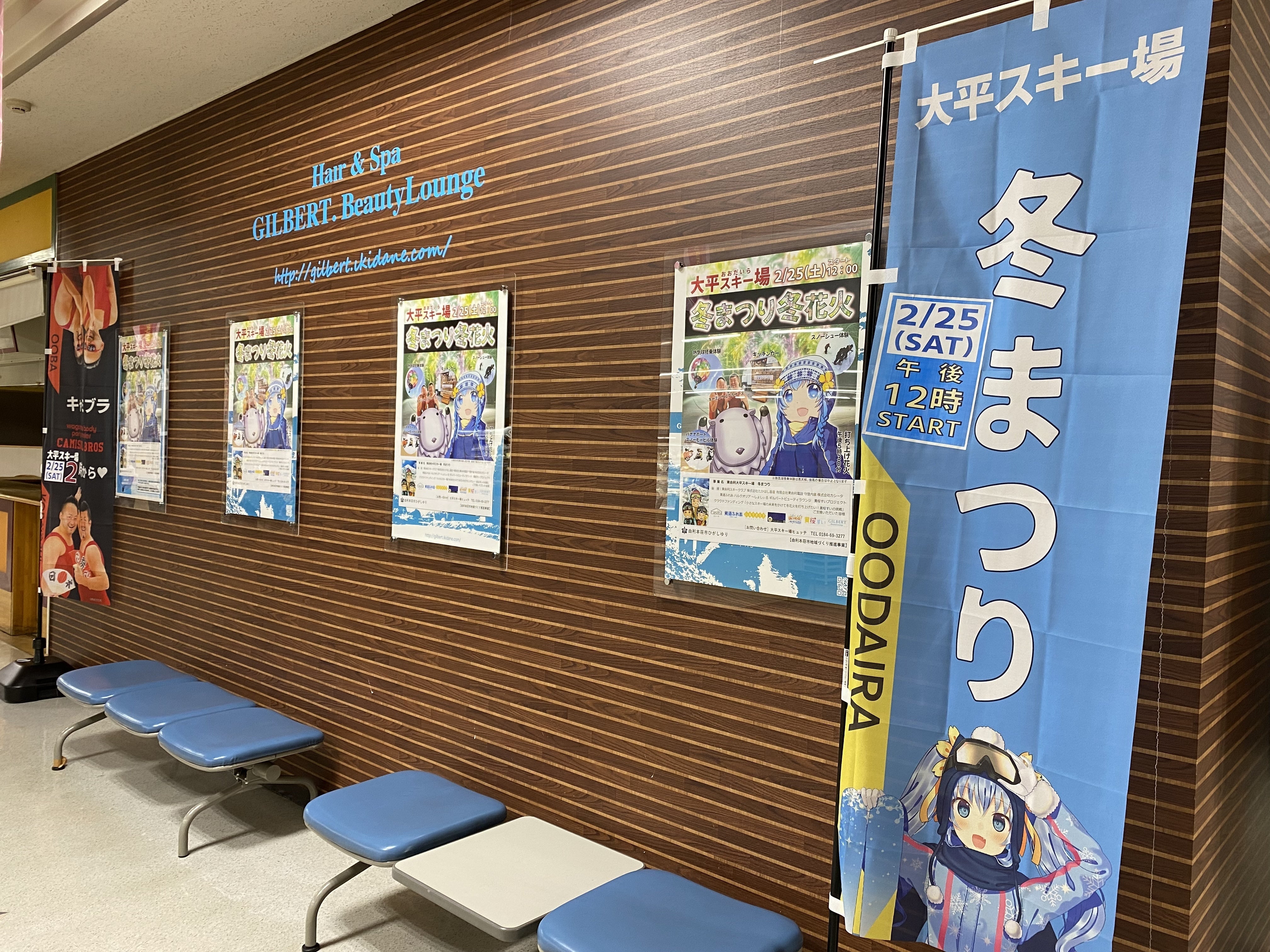 2/25イベントの日まで、道の駅東由利ショッピングプラザぷれっそに展示します。