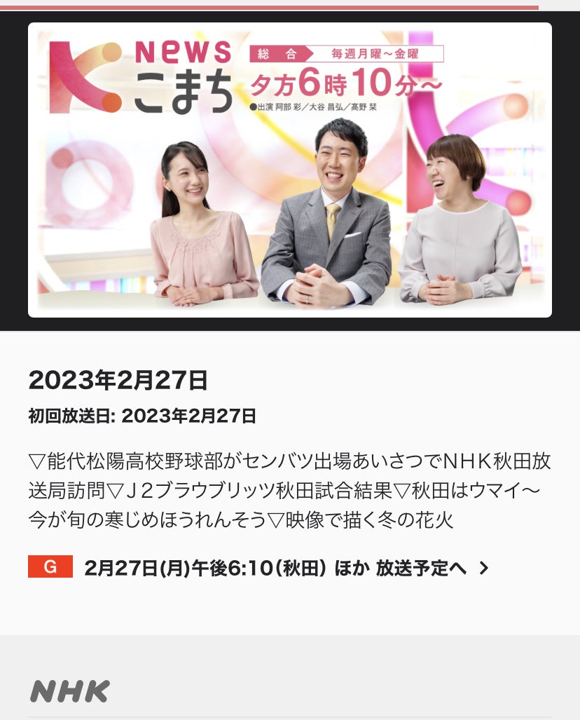 そして、明日2/27(月)のNHK秋田ニュースこまちにて冬花火が紹介されます(秋田県内)