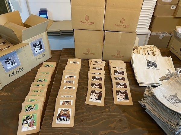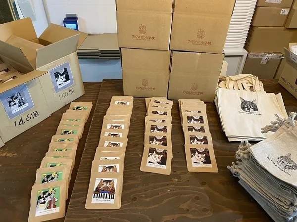 素晴らしいドリップバッグ珈琲を商材に、イラスト、パック封入などの周辺作業を、障がい者施設にて行って頂く。そして今回の『猫の名曲喫茶』が誕生しました。ティアハイム小学校の共助となり、困っている保護猫たちの力になれることに嬉しく思います。