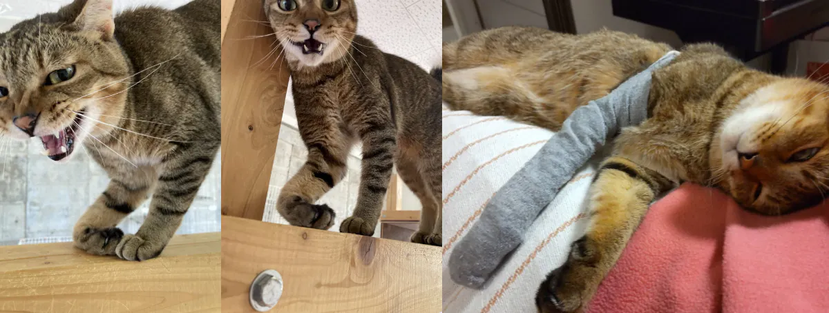 とらちゃんは過去の交通事故で右前脚に麻痺がありますが、