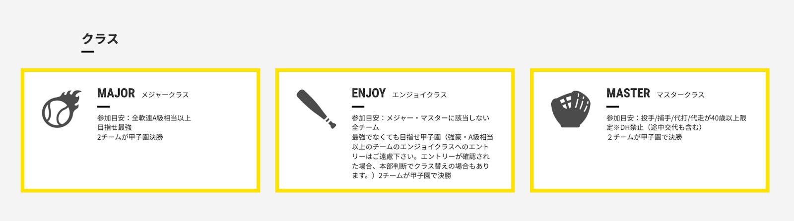 マスタークラス : 投⼿/捕⼿/代打の全てが40代以上のチームを対象とします