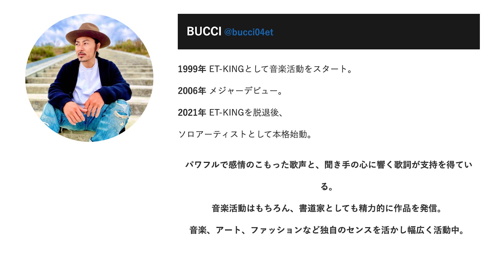 BUCCIさん(ex.ET-KING)に担当していただきます。
