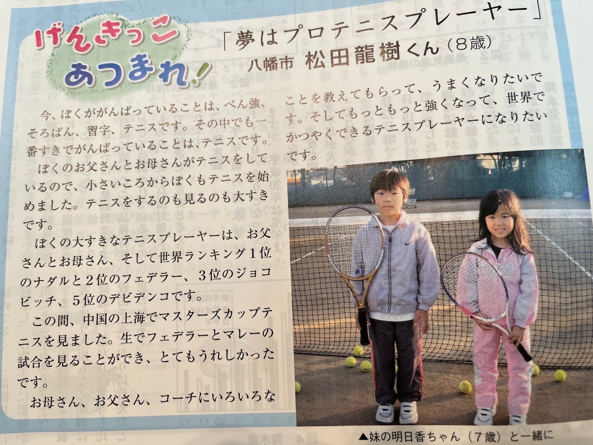 当時世界一位のプロテニスプレーヤー、ナダル選手に憧れ、小学生の頃から「プロテニスプレーヤーになる」と言っていたそうです。8歳の時、地元紙のインタビューでしっかり答えてます。