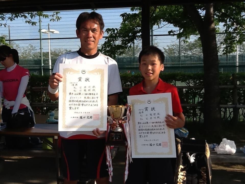 中学2年の時に父と出場した市民大会ダブルスで優勝!翌年には自身初めてとなる全国大会である全国中学生テニス選手権(中3の夏)にも出場しました。1回戦で負けてしまいましたが、初めての全国大会で同世代の有名な選手を沢山見る事ができ、とても貴重な経験をしました。