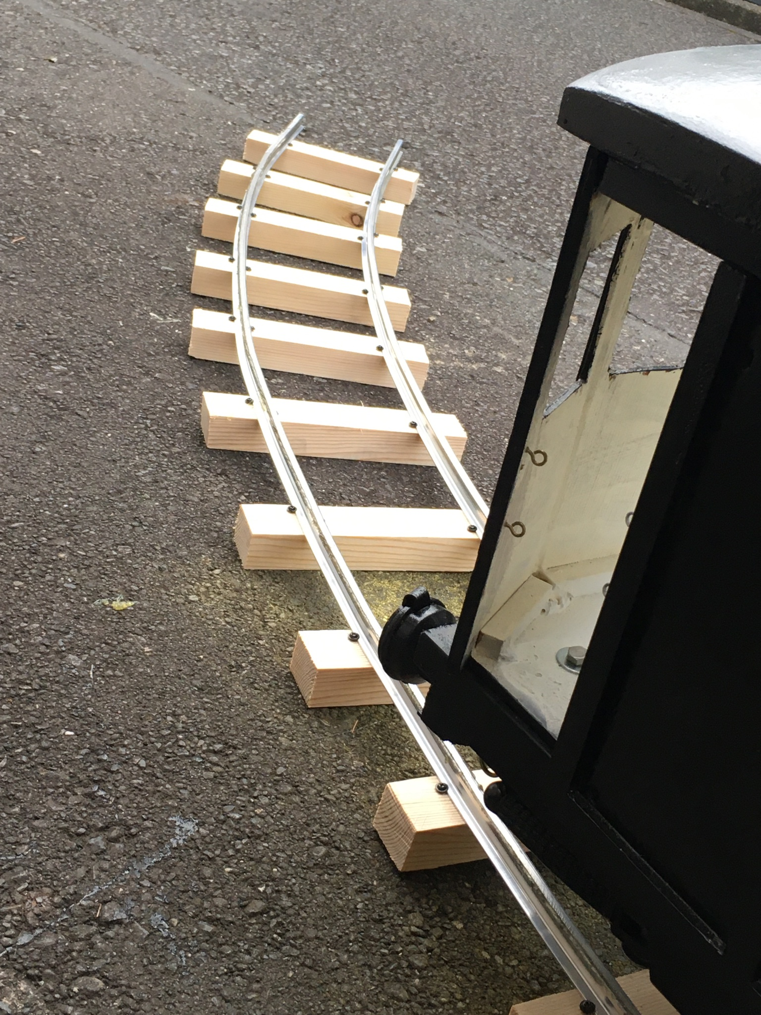 とらきやではレールを所有し、出張運転のたびに現地に敷設して運転しています。しかし、そのレールも2m×10の合計20mと少し物足りなく、しかもそのすべてが直線レールとなっています。曲線レールの製造を試みたこともありましたが、レールを曲げる機械の購入が必要との結論に達しました。また、2mあたり3000円、枕木という左右の線路をつなぐ部材を合わせると5000円弱になる線路の購入代金もかなりの負担となります。様々な幼稚園や農園、地域の公園や公民館など、多種多様な敷地に対応できるよう、半径4mのカーブレールと追加で直線レールの購入を行います。
