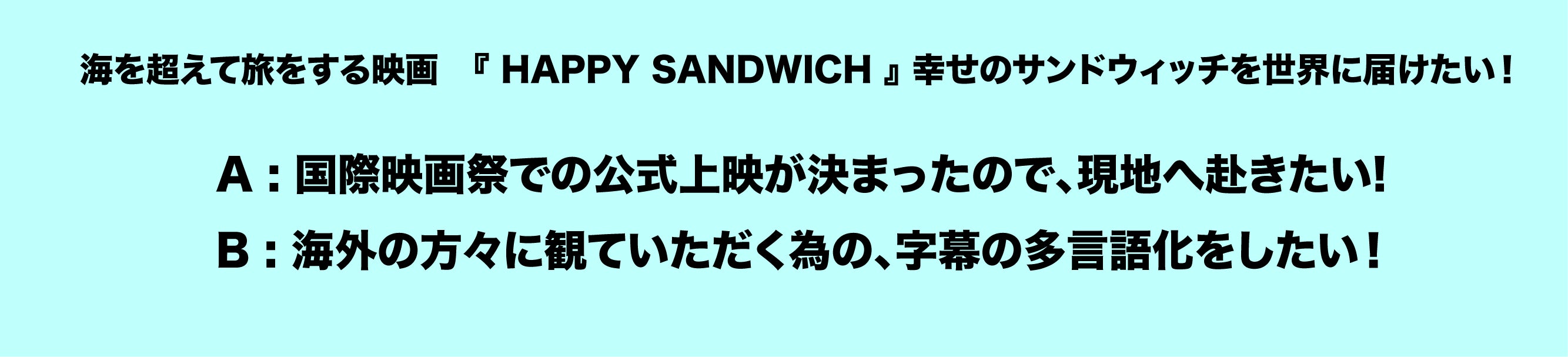 映画『HAPPY SANDWICH』幸せのサンドウィッチを世界中の人々に届けることに挑戦したい!