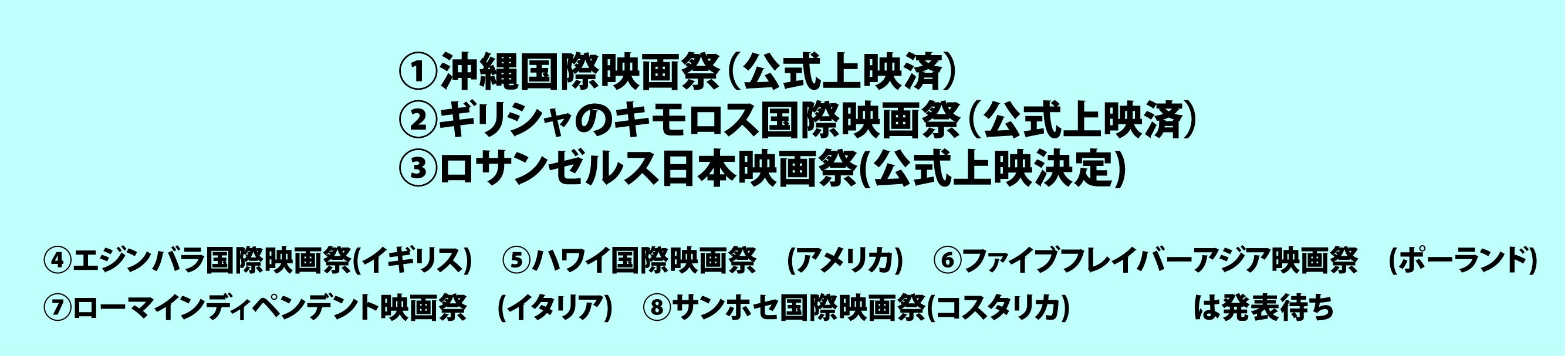 私がここやんばるで感じてきたことや考えてきたことが、たくさんの方々の協力のもと、映画という形になりました。制作には限られた資金しかありませんでしたが、それでも上映を続ける中で、予想をはるかに上回る数のお客様がシアターに足を運んでくれたり、世界の映画祭で公式上映してもらえることができました。