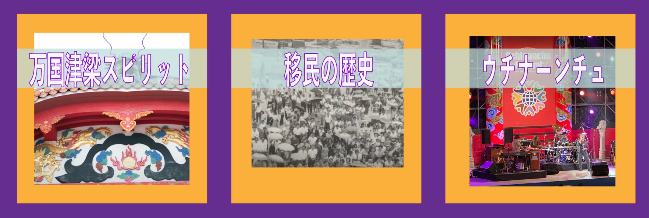 1899年に沖縄の海外移民の歴史が始まりました。海外に渡った沖縄県系の人々は過酷な生活を送りましたが、一生懸命にお金を稼いで沖縄の家族を支えたり、戦後の沖縄に早く救援物資を送ったりして、沖縄の人々を助けました。現在、約42万人のウチナーンチュが世界20カ国以上で暮らしており、南米、北米、欧州、中国、オーストラリアなど、世界の五大陸に広がっています。