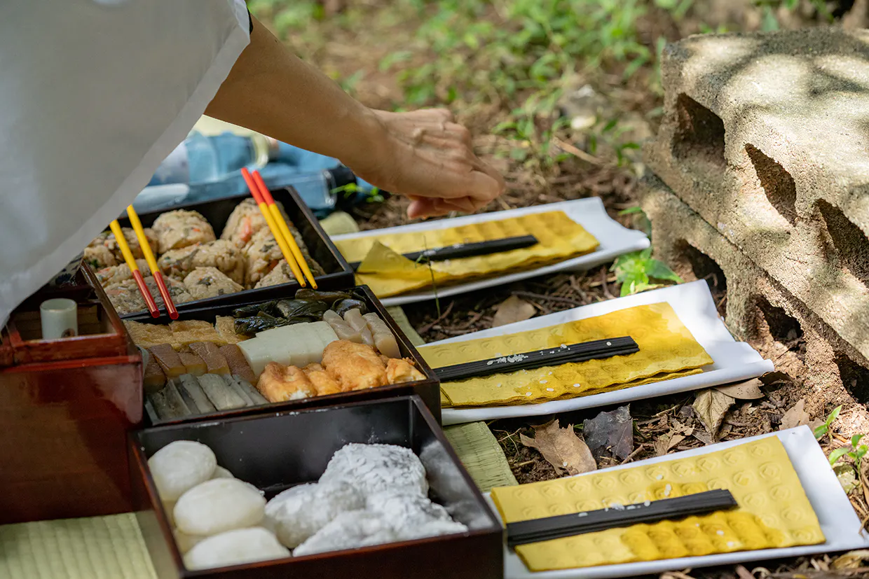 ここ沖縄では、地域によって違いがありますが、 ウンケー(お迎え) ナカビ ウークイ(お見送り) の3日間。お食事も出して、最後の日は御三枚(ウンサミ)と呼ばれる重箱が出されます。