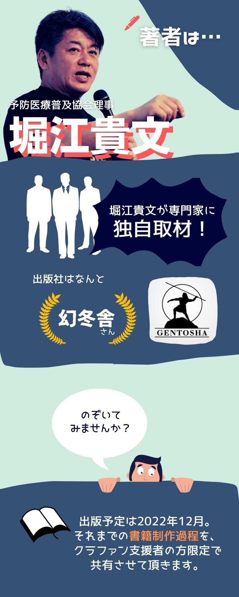 2022/11/02 15:14お陰様でクラウドファンディング開始3日目で目標金額200,000円に到達しました!ご支援くださった皆様、ご協力いただいている皆様、誠にありがとうございます。早速ですが、ご支援者様には本書の【はじめに】(初稿のため変更の可能性あり)を共有させていただきました。本書の【はじめに】は、堀江さんがなぜ予防医療が大切だと考えるのか、その根幹部分に触れる内容となっております。多くの人の希望となる書籍を皆様にお届けできるよう、引き続き努めて参ります。『寿命なき世界』制作プロジェクトチーム もっと見る