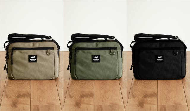 「KABAG」の名前の由来は、カバのように大きく開くバッグです。小型のショルダーポーチにも、もちろんこの“ガバっと開き”を取り入れています。