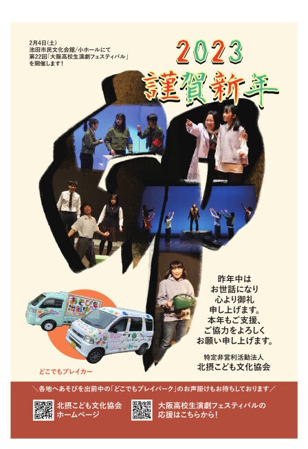 さて、2023年の年賀状は、第21回演劇フェスティバルの写真を卯年の文字にデザインして関係者の皆様にお届け致しました!