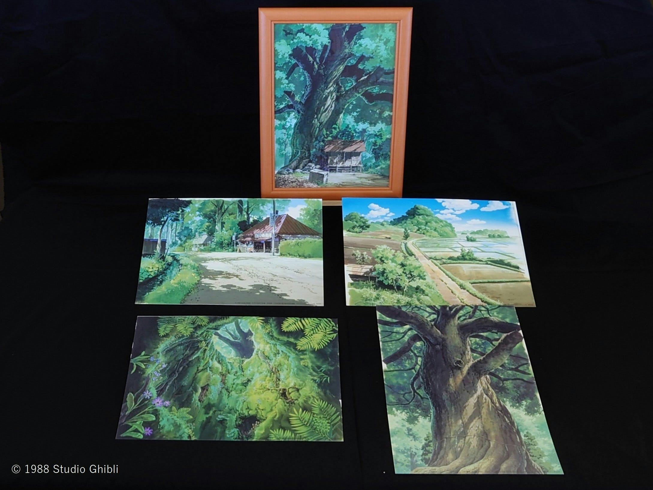 映画「となりのトトロ」に使われた背景画の複製画5種。