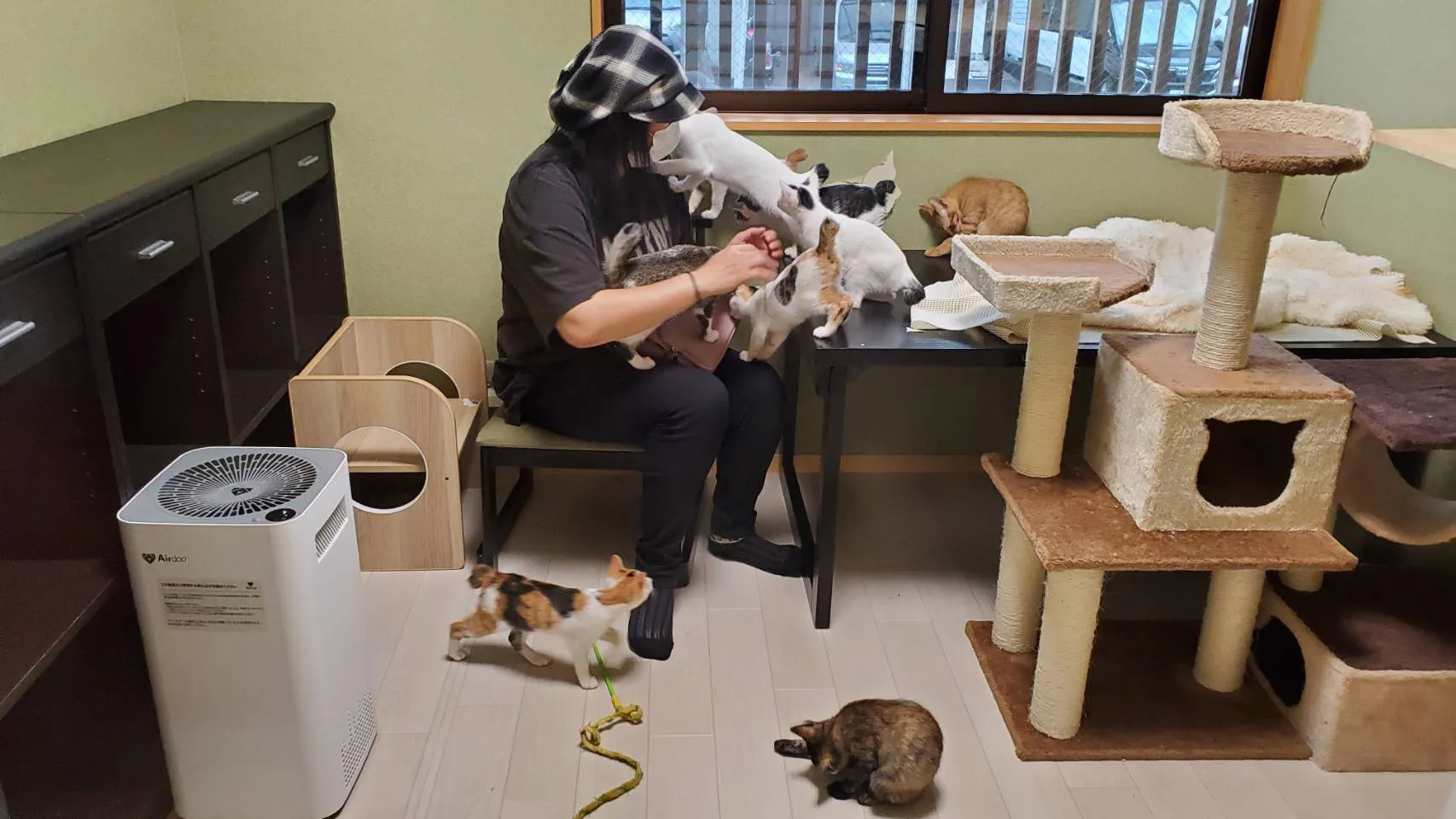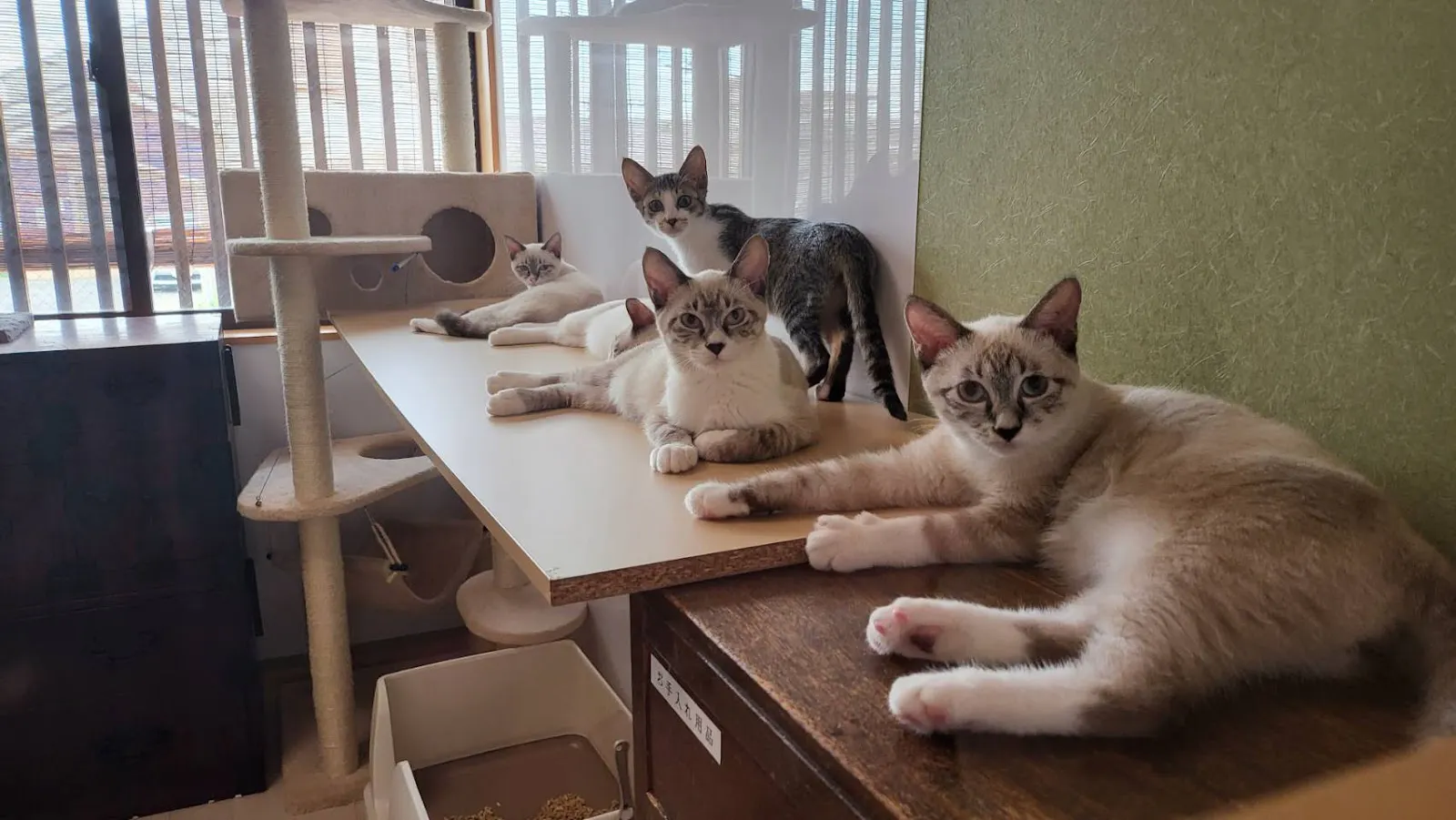 窓辺でくつろぐ保護猫たち