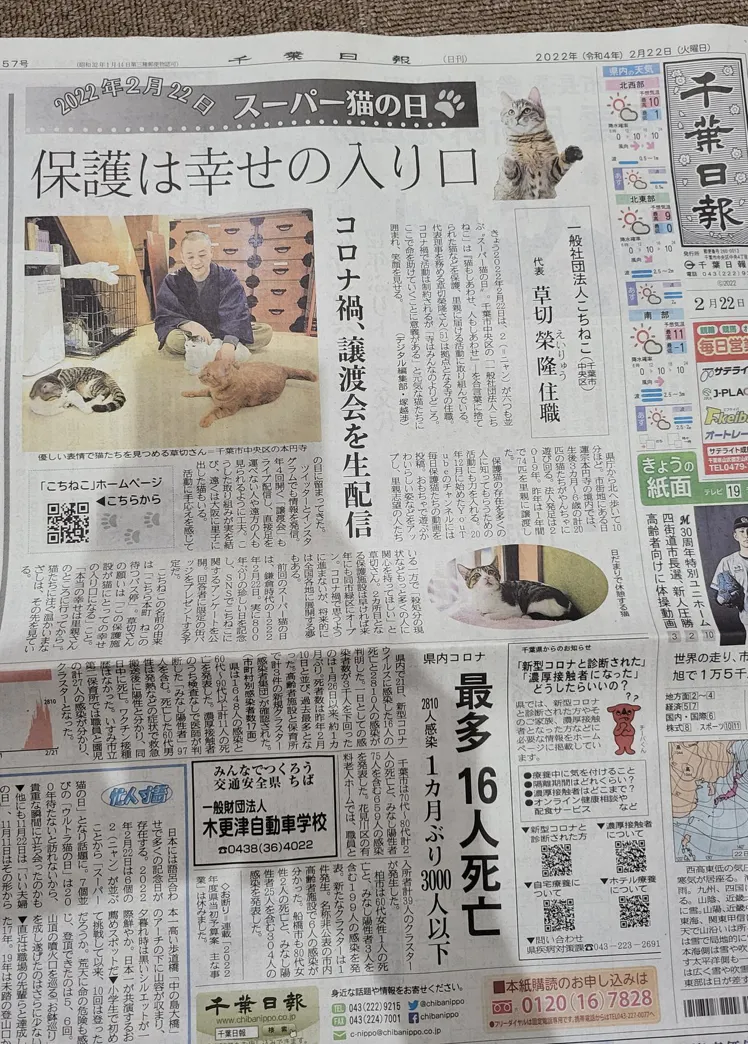 はじめまして、一般社団法人こちねこ代表理事の草切榮隆(くさきり・えいりゅう)です。千葉市にあります日蓮宗本円寺の住職を務めながら、猫を保護する活動に日々取り組んでいます。