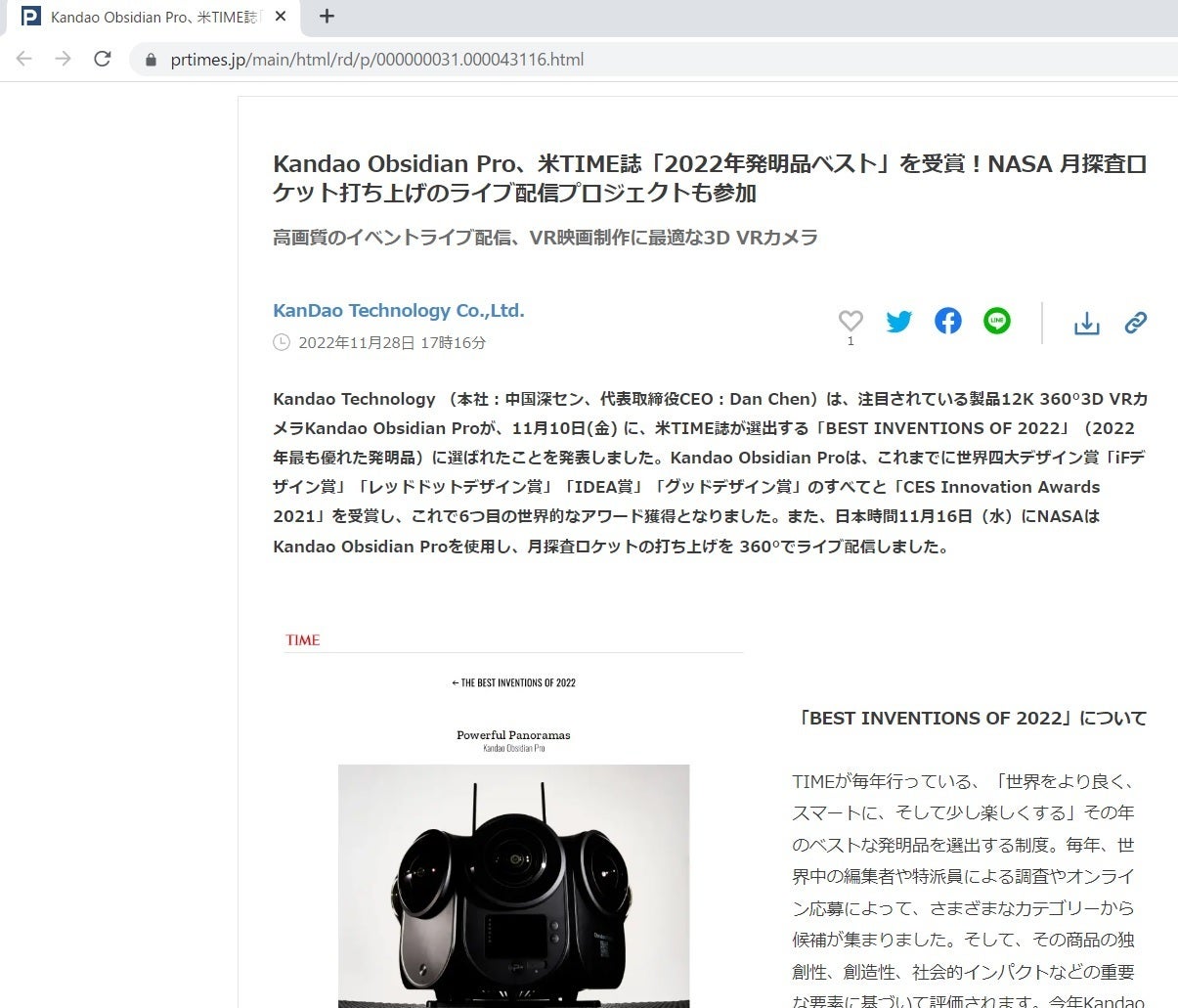 NASAの月探査ロケット『アルテミス計画』にて、QooCam EGOのメーカーであるKANDAO社の映像処理技術を使ったObsidian Proというカメラ装置で、『アルテミス1』ロケットの打ち上げ模様が初めて世界中にライブ配信されました。
