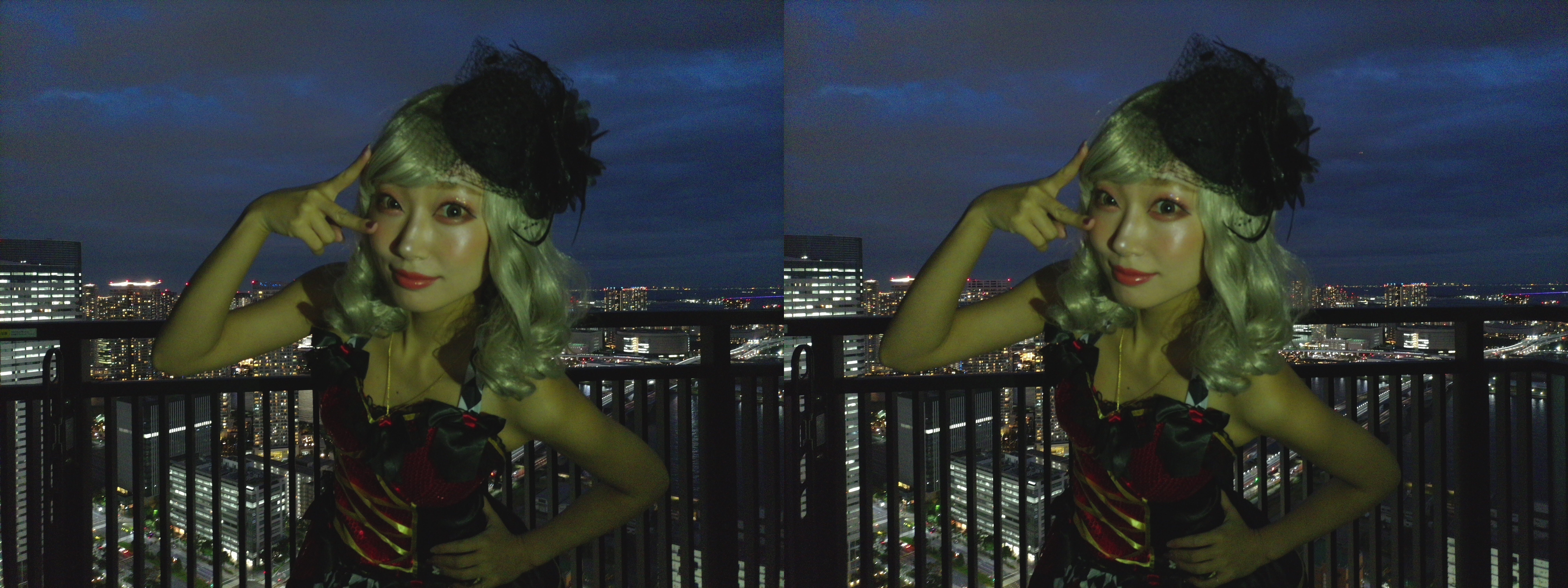 コスプレイヤーのシイナエリカさんに夜景で3D画像を撮影して頂きました!キレイな夜景も立体画像で見ると感動です!