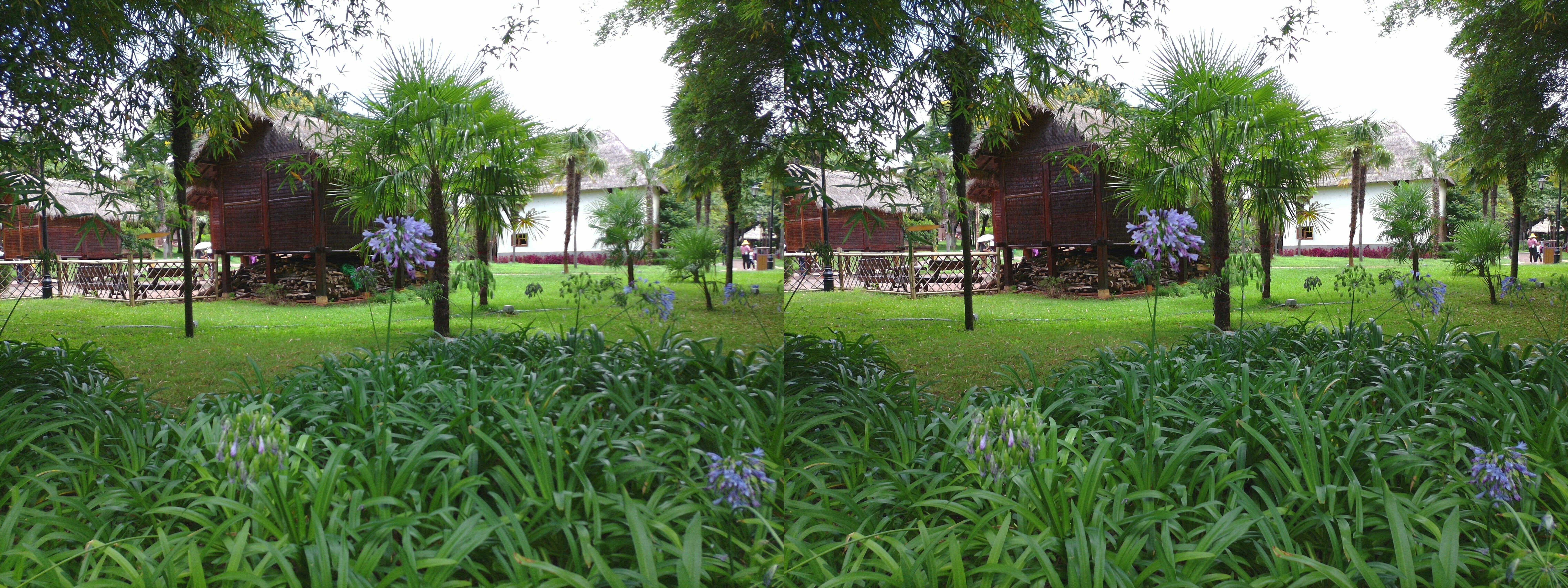 公園の風景を3D写真で撮影しました。奥行き感がよくわかります。