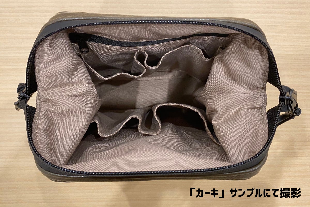 明るめのベージュカラーですので、視認性はあり、中のアイテムが見やすくなります。