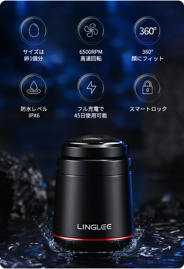 X1最大の特徴は、ヘッドを取り外す必要なく丸ごと水洗いできる点です。使用後の面倒な掃除が3秒で完了!さらに超小型で持ち運びしやすく、出張や旅行、キャンプなどにも適した電気シェーバーなのです。