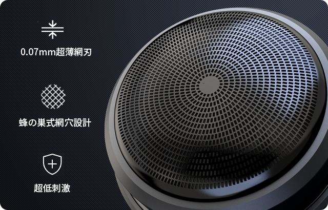 網刃の厚さが0.20mm以上のシェーバーが多い中、X1の網刃は厚さわずか0.07mm。網刃は薄ければ薄いほど肌にフィットし、短い髭や硬い髭も逃さずカットできます。
