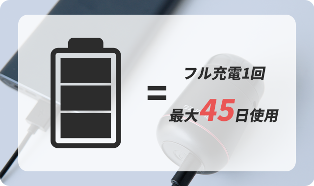 長時間動作可能で漏電防止のリチウムバッテリーを搭載し、超低摩擦モーターで消費電力を大きく抑えました。フル充電で約45日使用でき、旅行先で何度も充電する必要はありません。