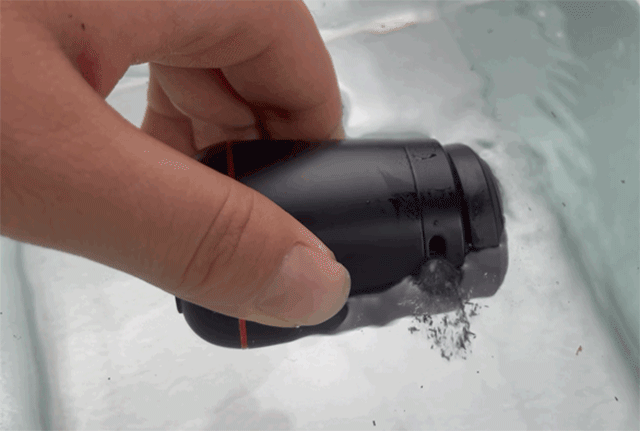 電源をオンにして水の中に入れると、自動で回転して洗浄できます。