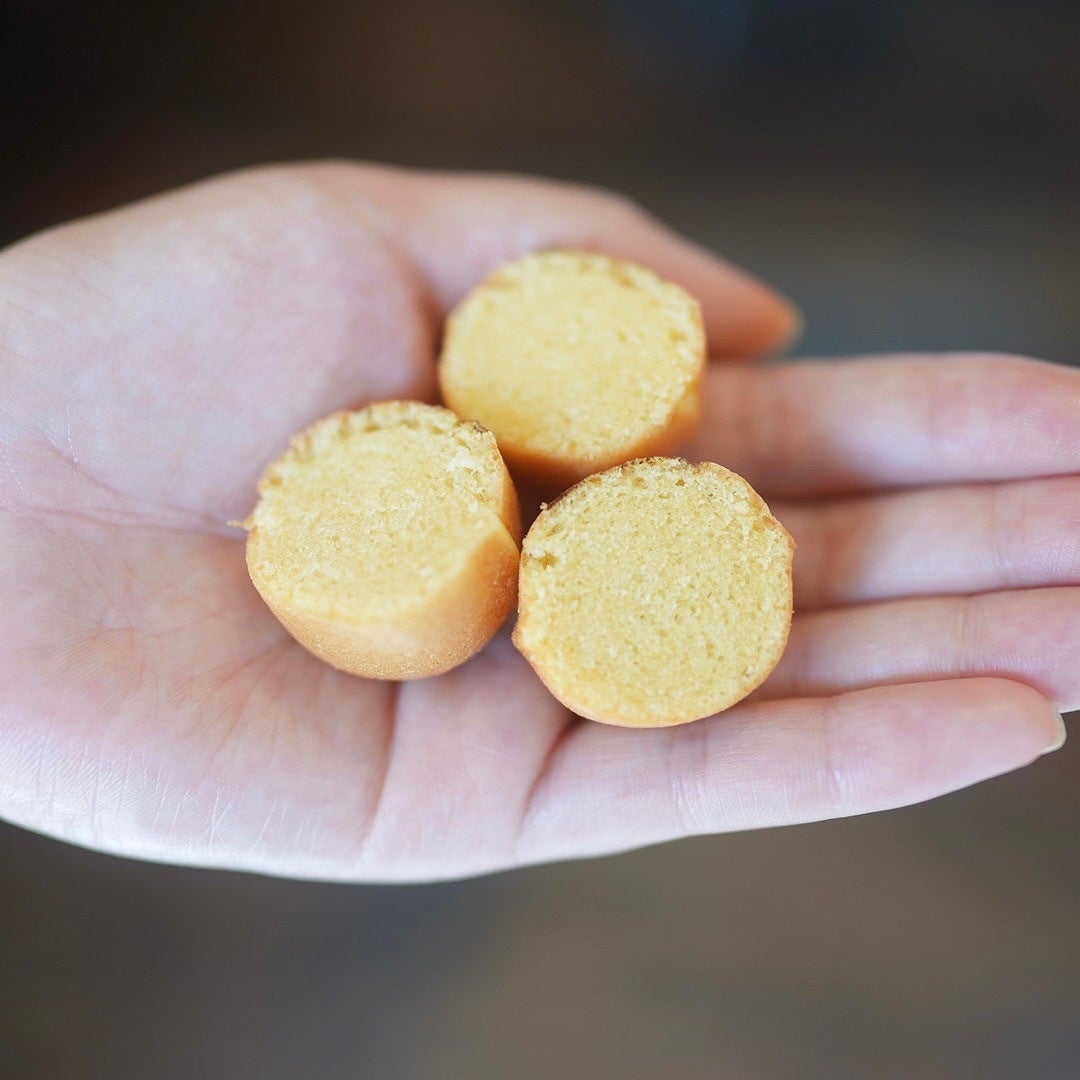 「ベビーカステラを買って帰って、翌日食べるともう硬くなってて食べられないのに…カステラのあかちゃんは、翌日の方がしっとりが増してて美味しい♪不思議!!!」