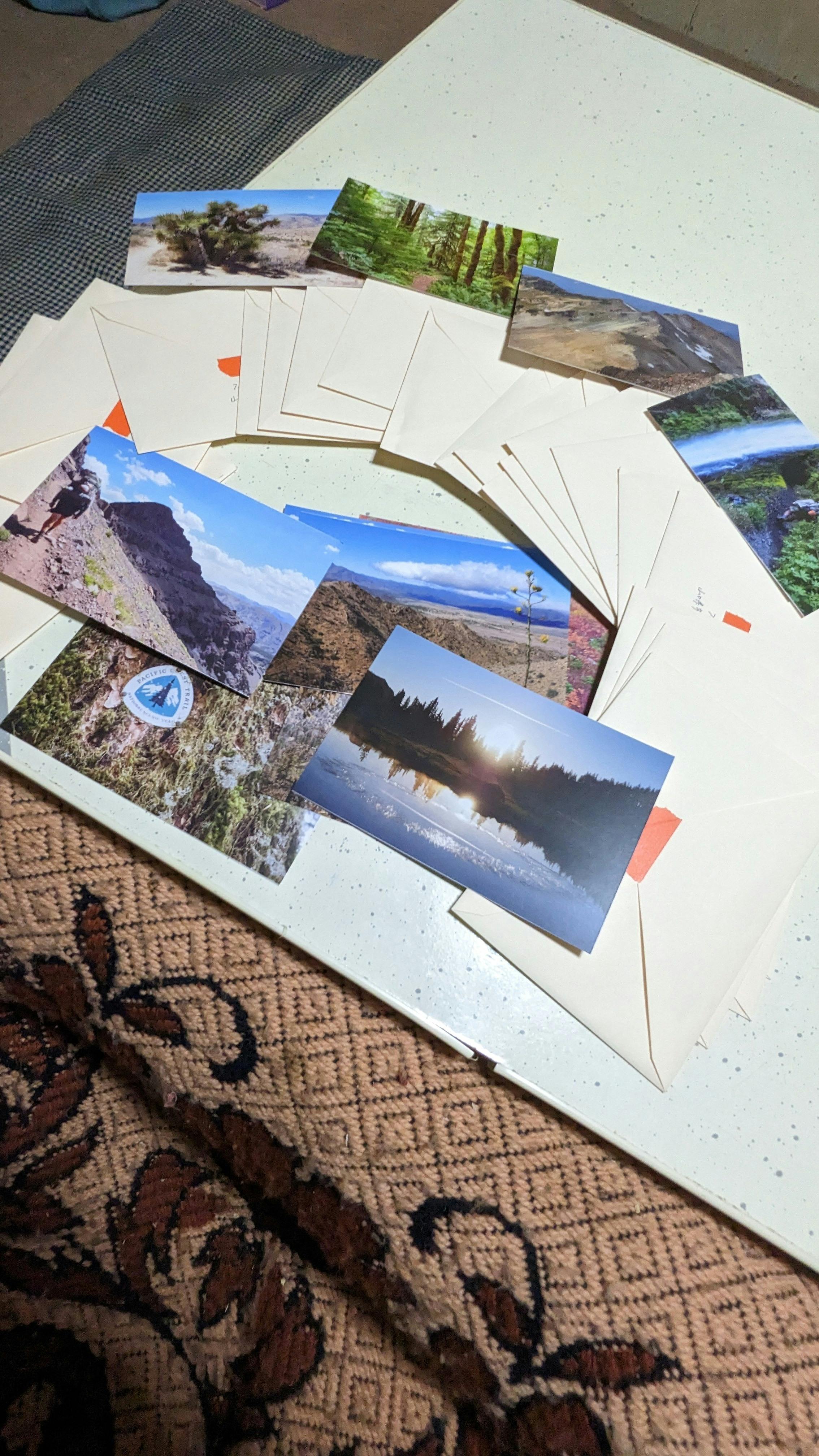 先程リターン商品の1つであるポストカード(2枚組と5枚組)を発送いたしました。ポストカードを選んでいただいた支援者は、数日後にリターンが届きます。手渡しさせていただく支援者は直接ご連絡いたします。コチラのリターンも卓上カレンダーの時と同様に、直筆メッセージも添えております。