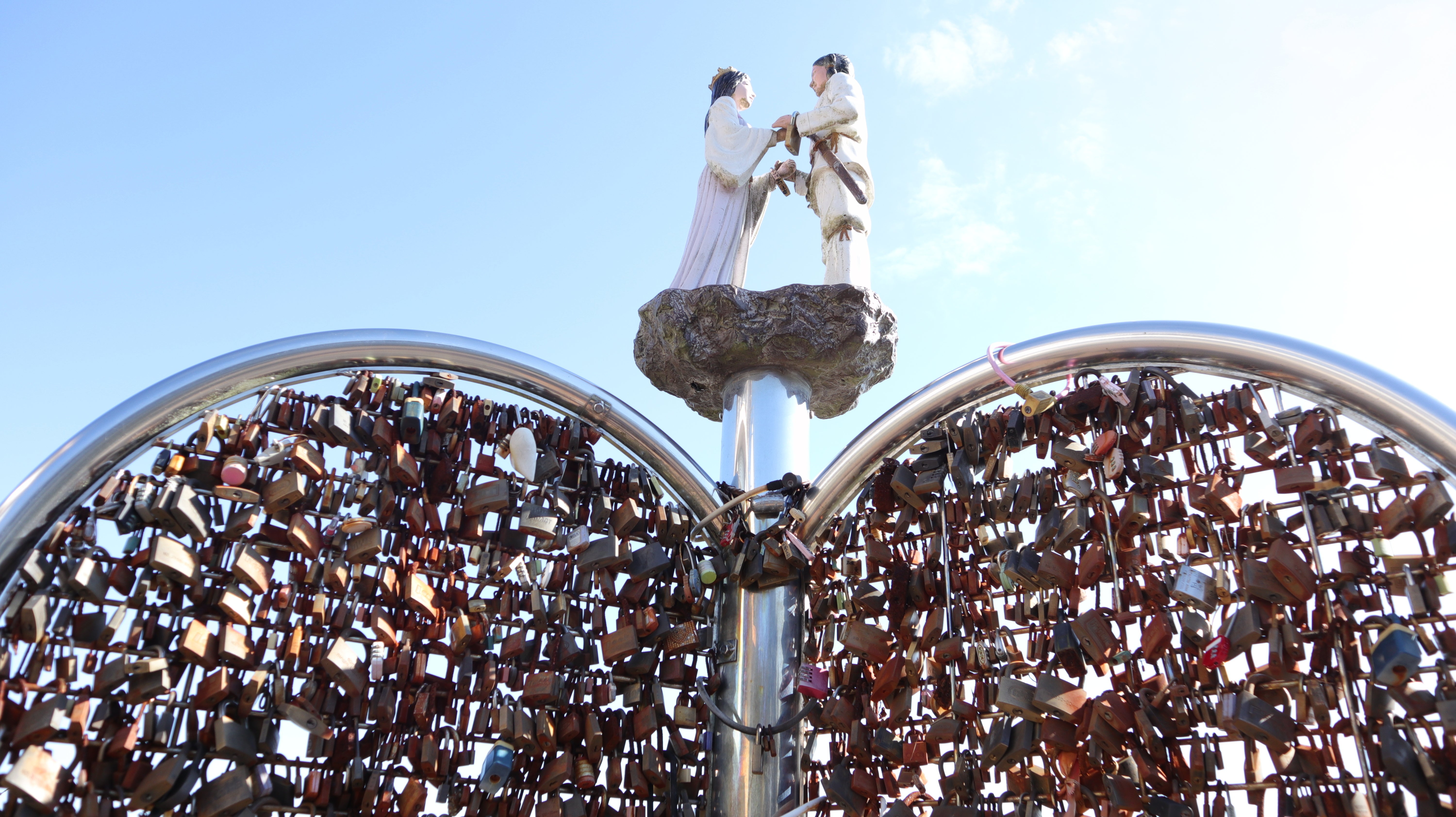 延岡を見下ろす愛宕山はニニギノミコトとコノハナサクヤヒメが出会い結婚した場所であるという神話があり展望台には「出会いの鐘」と南京錠を掛けて愛を誓う「鍵かけモニュメント」があるデートスポットです。