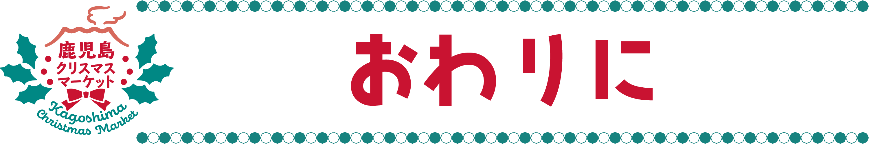 一期一会の出会いから創られていくクリスマスマーケット。鹿児島最大の冬の風物詩は、私たち実行委員だけでは成し遂げられません。毎年、多くの方々と地域の賑わいを創りながら「鹿児島」をもっと楽しくより多くの方が笑顔になれるようにこの幸せに感謝しながら表現し続けます!