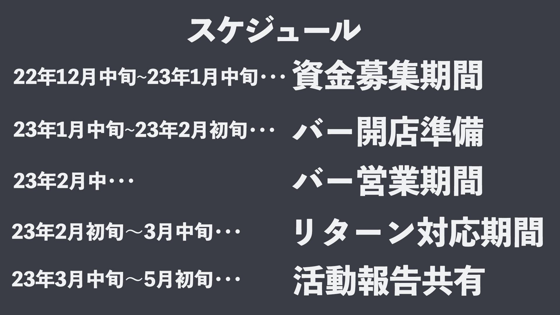 ※場所、日程はバー開店当日でなくてもOk