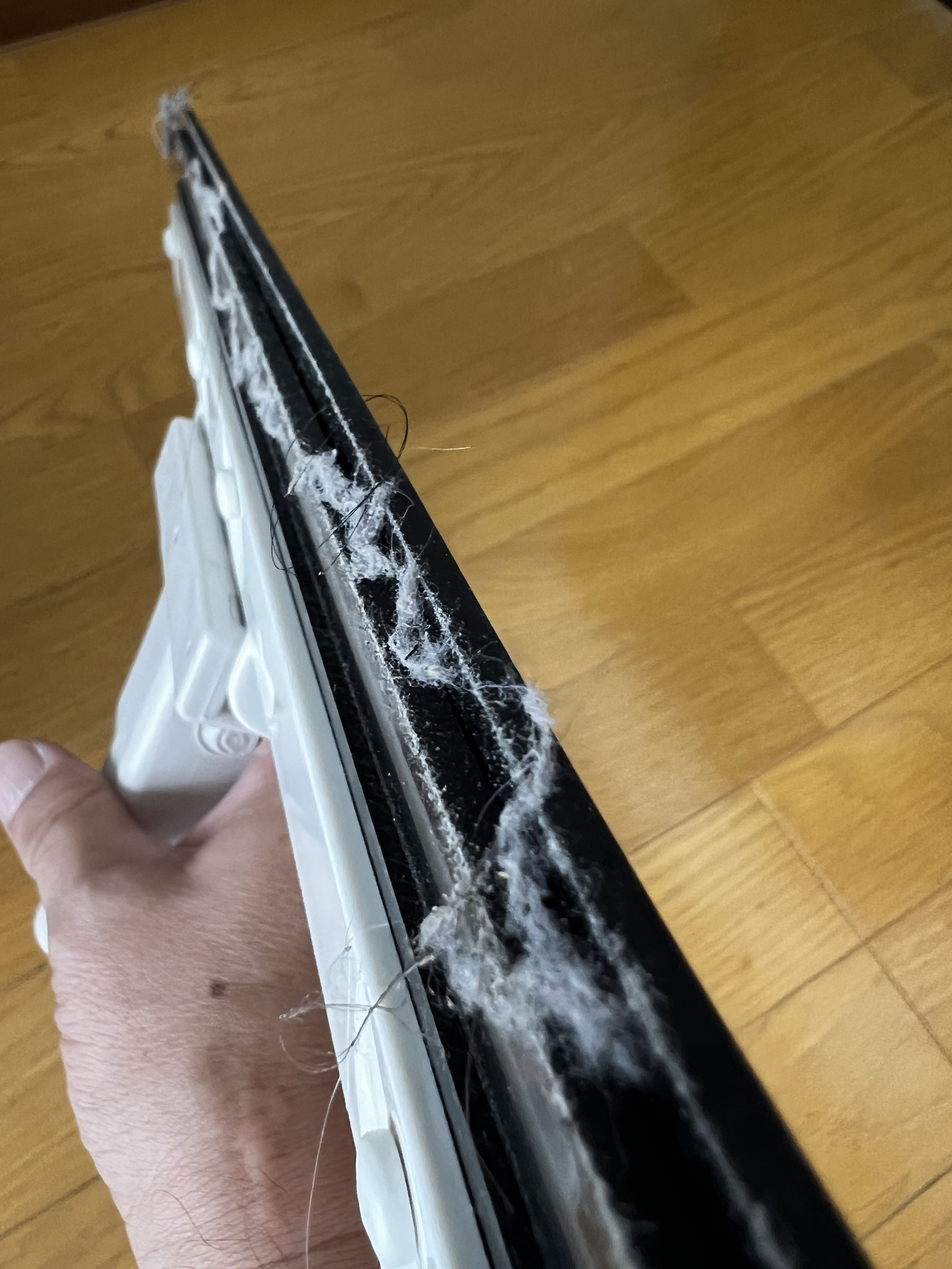 AirMopを使うと、本当に驚くことばかりなのですが、汚れがごっそり取れる場所もありますが、逆に全然きれいな場所もたくさんあることもわかりました。さらには、AirMopでホコリがごっそり減ると、翌日以降の汚れがとても少なくなっていたことにも驚きました。