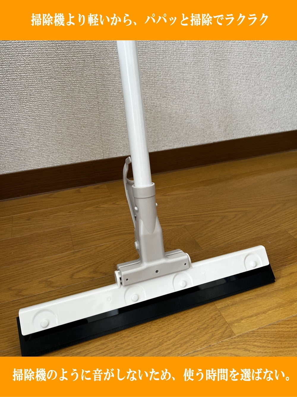 7.集めた汚れを再び塗り広げない”⼀⽅向拭き”設計。ほうきやモップと違って、何 度も床を往復する必要がありません。