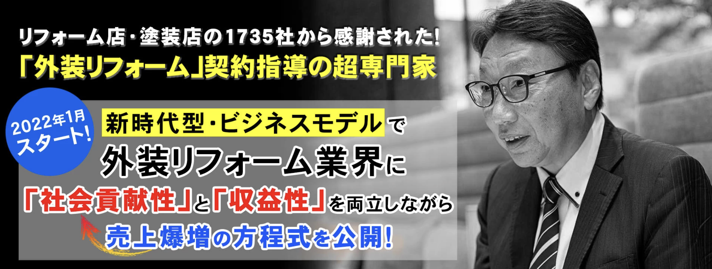 一部上場企業のエンジニアで金・一部上場企業のリフォーム営業で金・下請けの営業指導で金。振り返れば、リフォーム業界を変えるために、人生を歩んできた気がします。