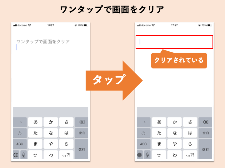 既存のメモアプリでは、画面に入力された状態でアプリを閉じると、再度起動時は入力情報が残った状態で起動するものが多いですが、Atomsではバックグラウンドから復帰する時も綺麗な画面から始まります。