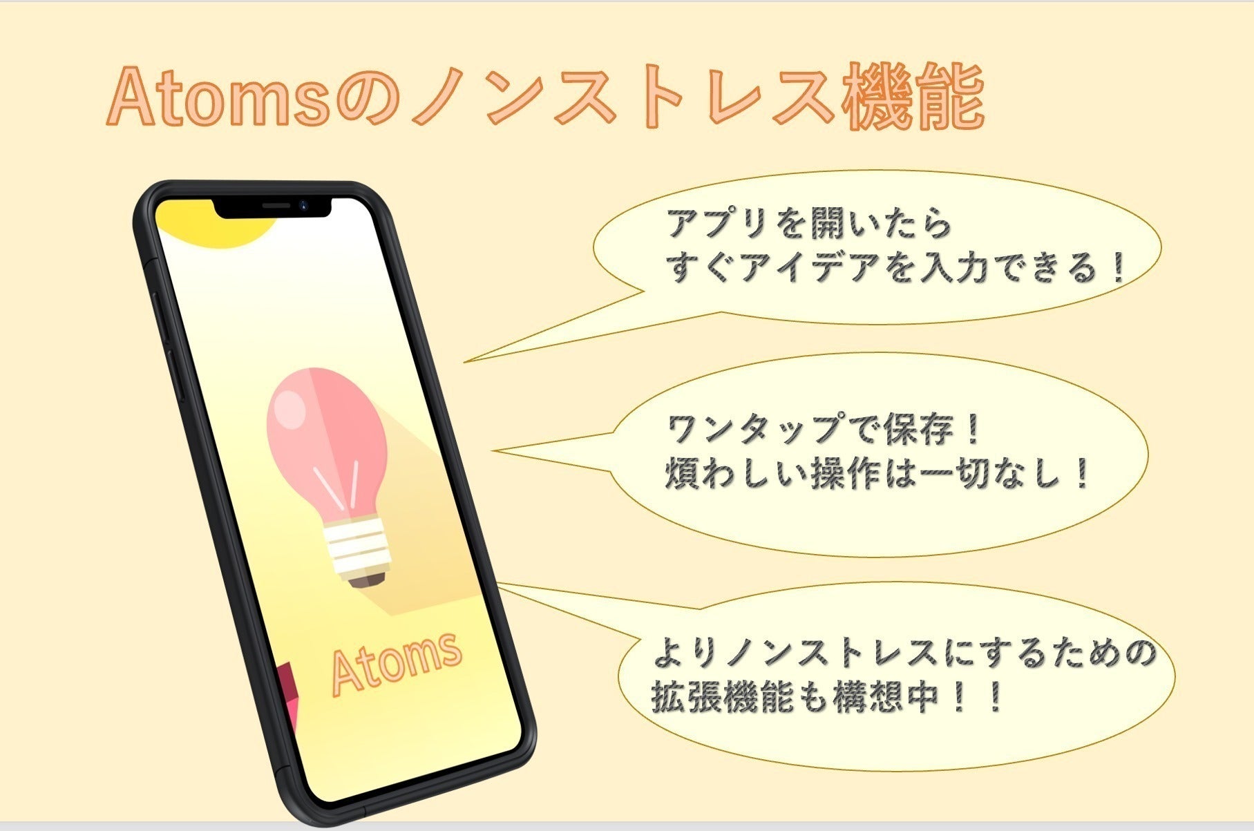 そして、最終的には「ノンストレスアイデアアプリ」はAtomsだ!と、さらに胸を張って言えるものにしていきたいです!