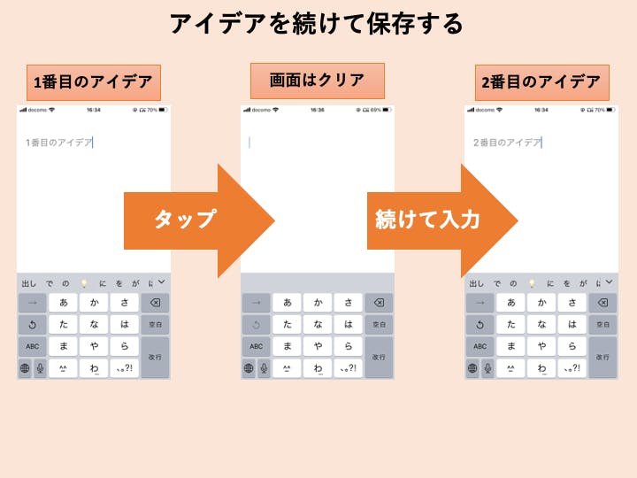 ワンタップでアイデアを保存できるので、無駄な操作がなく、