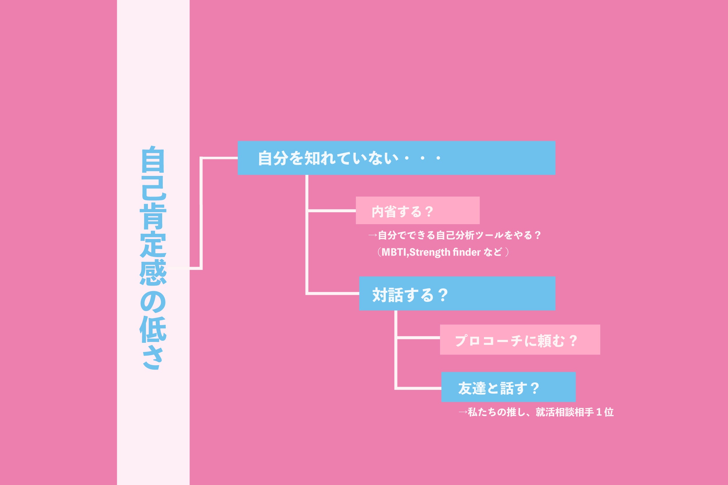 今回は就職活動で行う「自己分析」に着目し、「若者の自己肯定感の低さ」という問題に取り組もうと思いプロジェクトを立ち上げました。