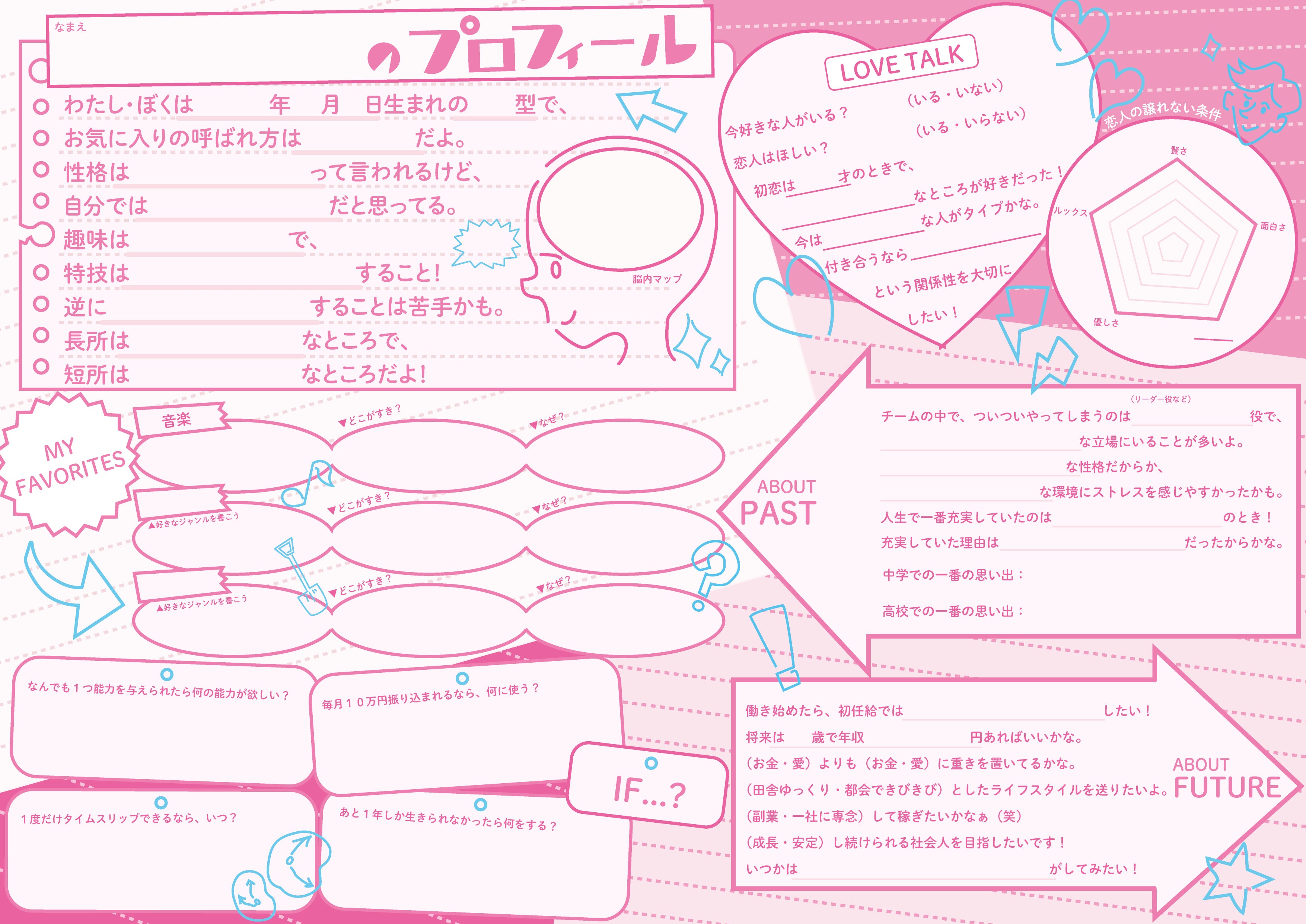 友だちと自分らしさを深掘りできる『大学生のプロフ帳』を制作することです!