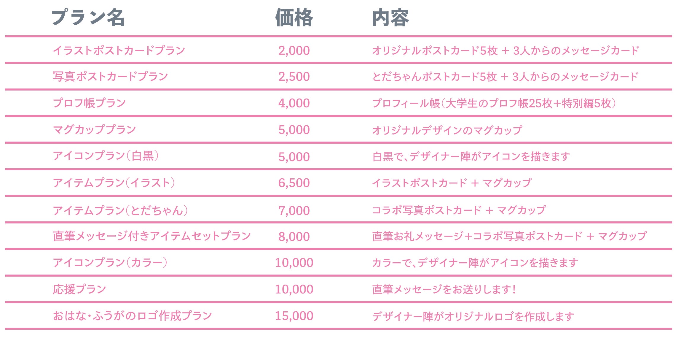 また、リターンで発送する「おとなのプロフ帳」に関しては、何度も楽しめるように、バリエーションを持たせたものを発送いたします。内容は届いてからのお楽しみです!