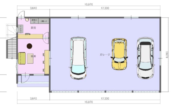 隣の飲食スペースはガレージが見える大きな窓を設置して愛車を見ながら休憩したり仲間と親交を深めたりできるカフェスペースになります。