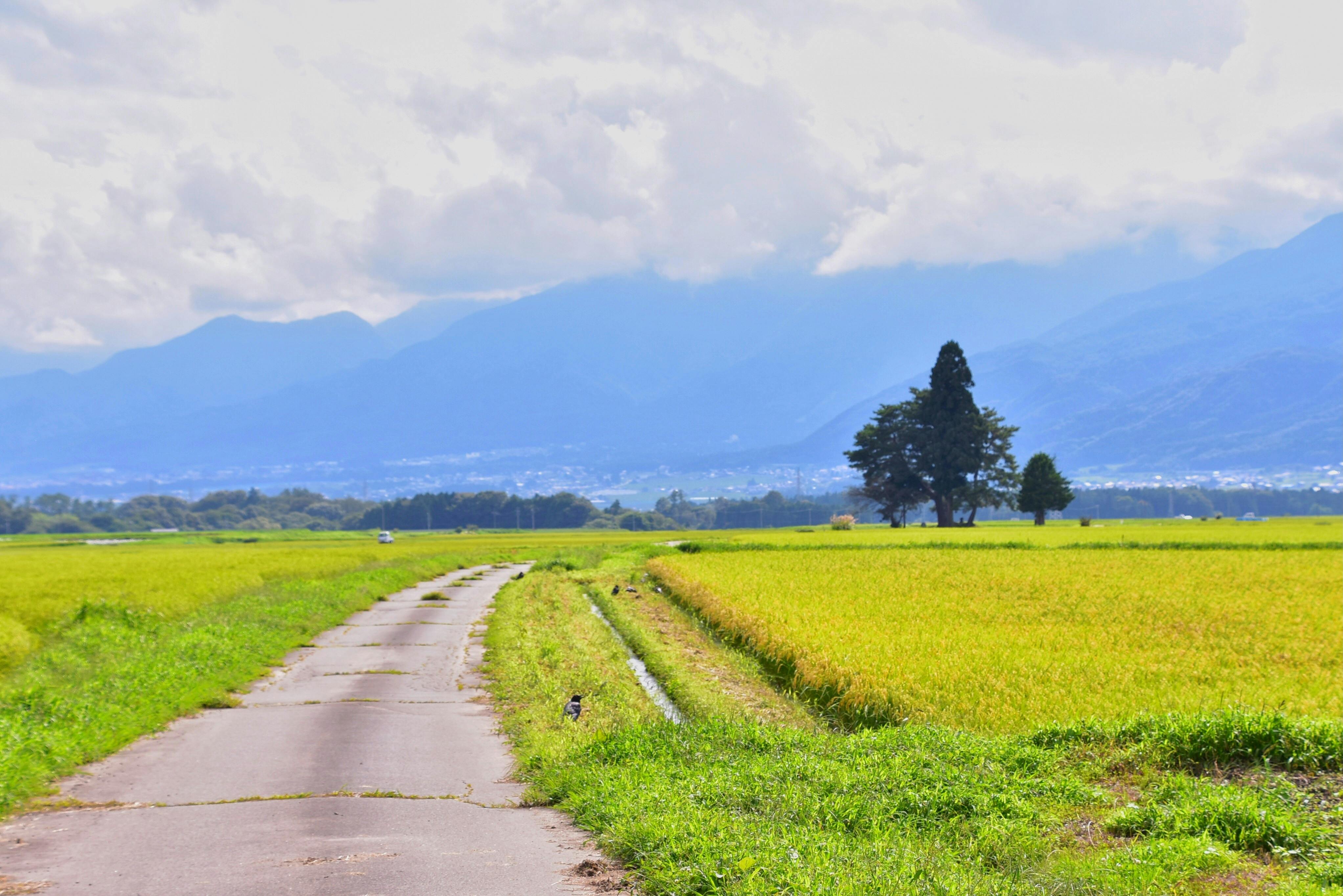 田んぼの真ん中を走る道も四季折々美しい風景になりまるで絵画の中にいるような気分になれます^_^