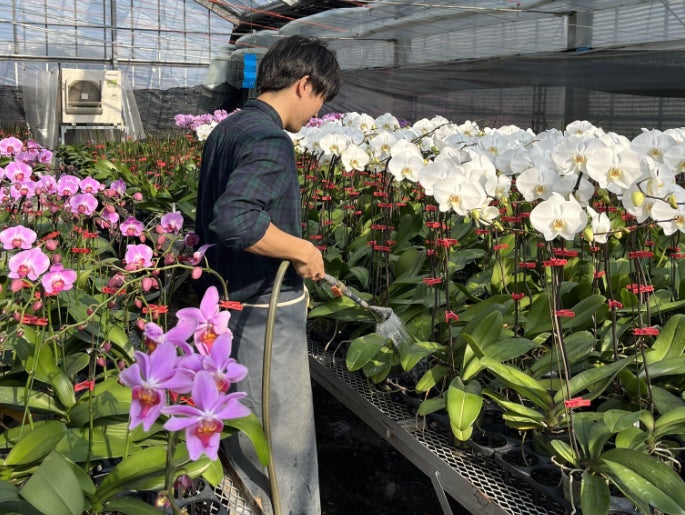 熱帯性植物である胡蝶蘭は徹底した温度・日光の管理が品質に大きく影響します。