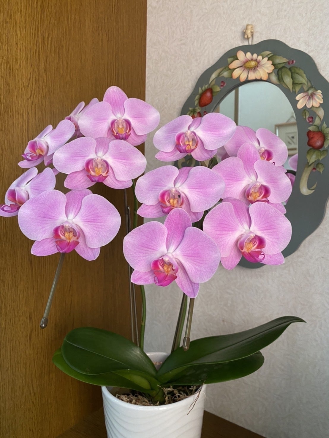 また、胡蝶蘭は、生命力の強い花で、植え替えや手入れをしてやることで、花を2度咲かせることができます。昨年度日高広域のイベントで「温室見学&2度咲きのための育て方講座」をたくさんの人に参加していただけました。下記の写真は参加したお客様から送られてきた写真になります。よく来て下さるお客様の中には10年間毎年花を咲かせている方もいらっしゃいました。