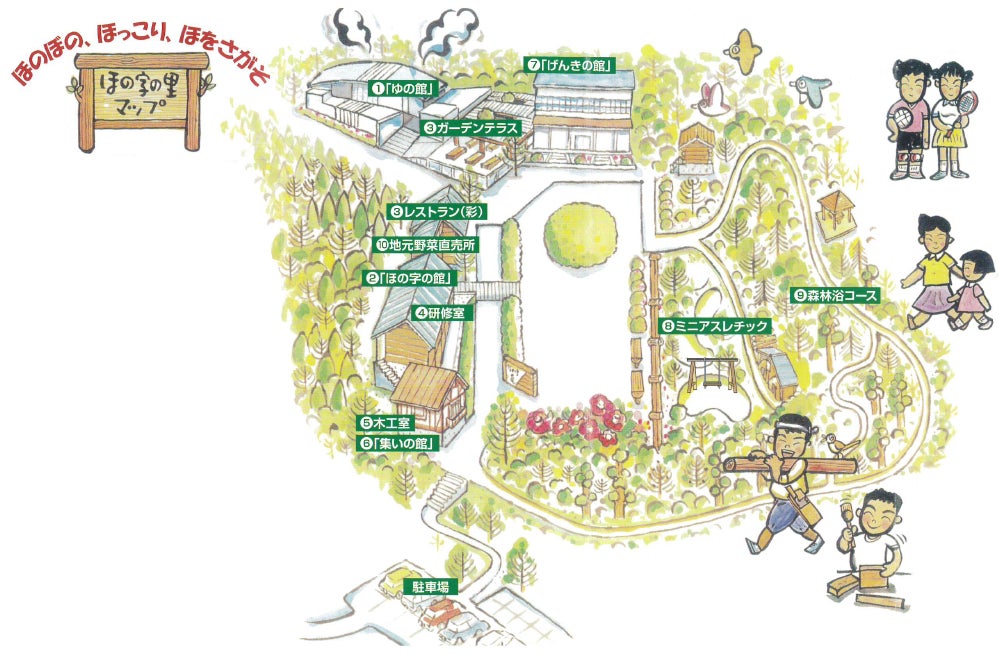 旧ほの字の里マップ。ここをリノベーションしていぶき温泉は生まれ変わりました。 この二つの課題を解決する為に、我々のル・クロが持っているユニバーサルの仕組みで、地域課題×物的、人的の課題をユニバーサルの価値を創って有機的にして行こうと思ったのがきっかけです。つまりサーキュラーエコノミーの循環型を意識してます。
