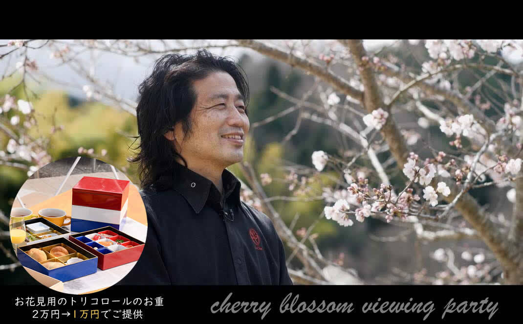 達成お礼の返礼品として、お花見で提供している2万円の本格フレンチ「トリコロールのお重」を、今回お重ケースもセットで 1万円でご提供します。