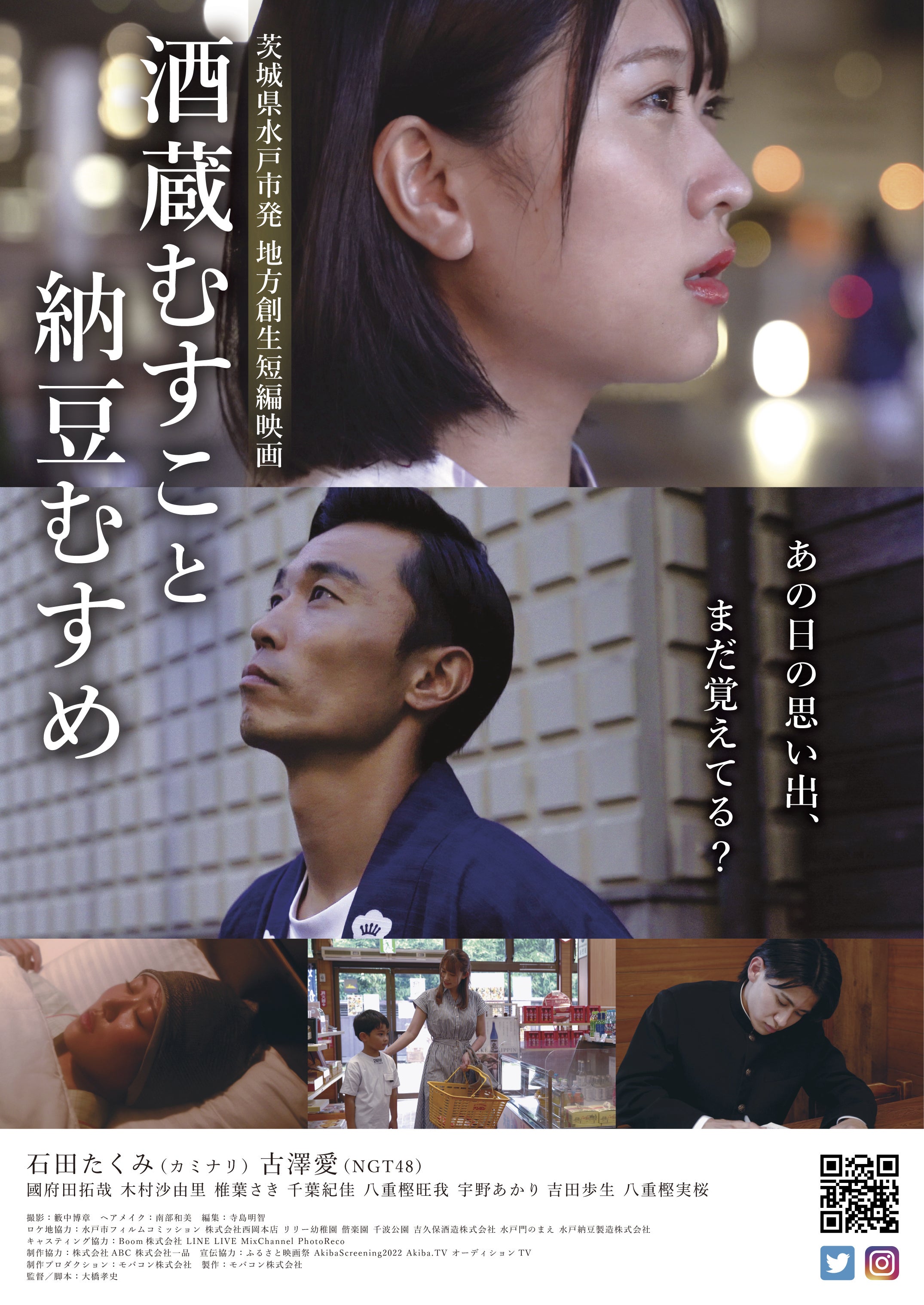 茨城県水戸市にある創業200年以上の酒蔵の息子として生まれた誠と、納豆製造所に生まれた愛。2人が幼少期から大人へと成長し、そして困難を乗り越えていく姿を、茨城県水戸市の魅力とともに描くヒューマンドラマ。吉久保酒造や偕楽園、千波湖など茨城県水戸市の名所で撮影を行いました。
